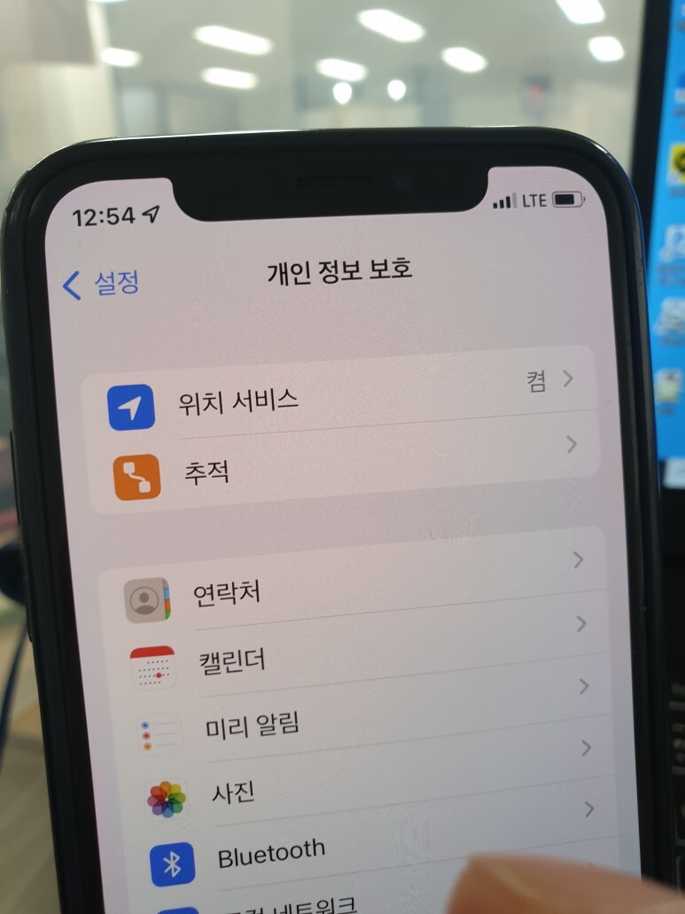 설정을 찾아 들어가 주세요 그리고 개인 정보 보호를 클릭해줍니다